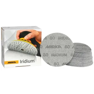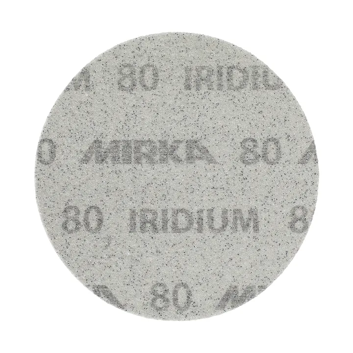 Iridium is a premium paper abrasive for universal sanding. Perfected for speed and efficiency, it has a mix of ceramic and aluminum oxide grains on a flexible paper backing and a precision coating that prevents clogging and reduces pilling. It practically repels dust, and its usable life is increased as the grains stay sharp for longer. Dust extraction is optimized with multihole patterns for discs and strips. Iridium delivers amazing results on both soft and hard surfaces, making it the ideal paper abrasive choice for professionals in any industry.