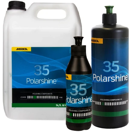 Polarshine® 35 is a coarse polishing compound ideal for demanding Industrial and Marine applications, especially materials such as gel coats, high gloss lacquers and composites. Fast and efficient, it produces a high surface gloss and minimizes the sanding steps. The compound’s special emulsifying properties reduce the risk of drying out or overheating the surface. The viscosity of Polarshine® 35 reduces splashing and makes it is easy to use