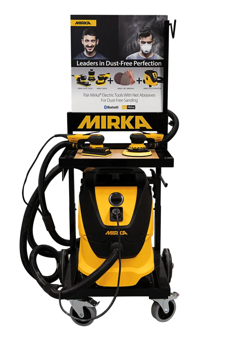 Combined with the electric tool of your choice (DEROS/DEOS – sold separately), this display allows you to showcase industry leading dust-free systems, electric tools, net abrasives, and related accessories – and is proven to help sell more of each. Mirka® Trolley Interactive Retail Display includes: